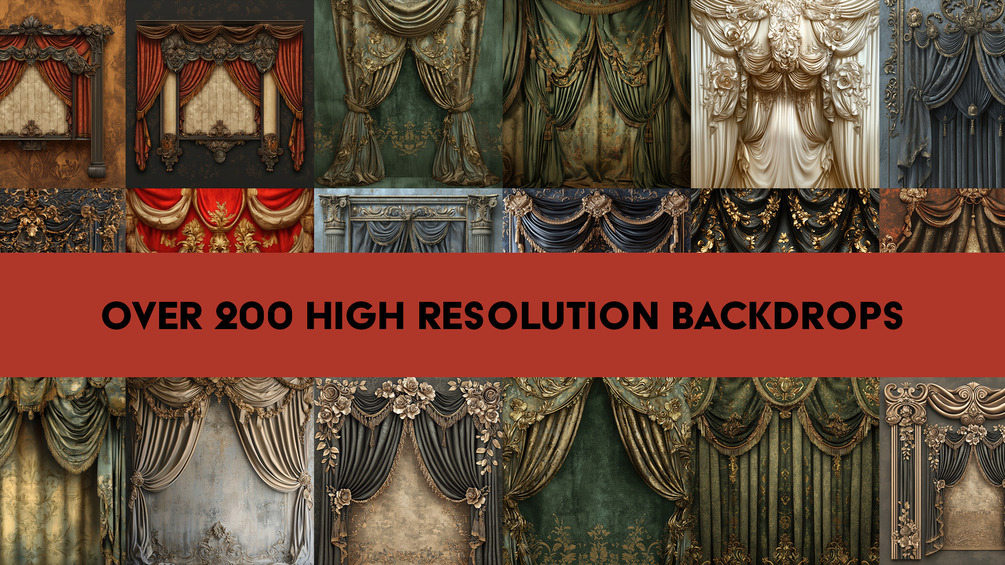 Introducing Timeless Elegance: AI-Crafted 4K Backdrop Collection for Portraits, a premium set of AI-crafted digital backdrops designed to elevate your portrait compositions. This collection features high-resolution backdrops for photographers, with 223 4K portrait backgrounds meticulously designed for digital compositing. These handcrafted digital backgrounds represent the elegance of Victorian, Rococo, and Baroque backdrops, offering a timeless aesthetic perfect for professional and creative use.