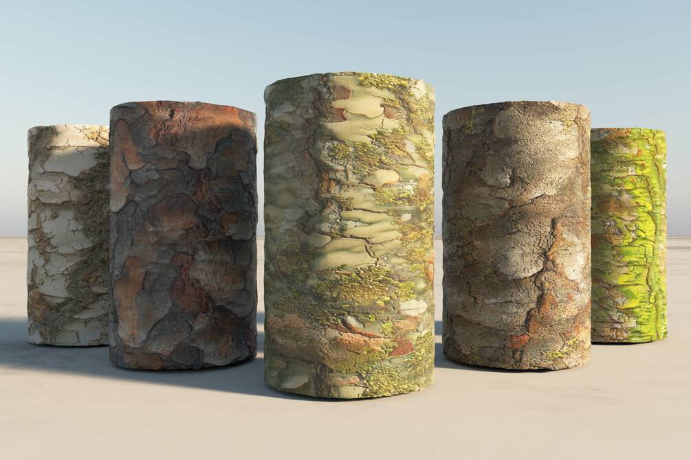 Tree barks, PBR material maps. Set one.