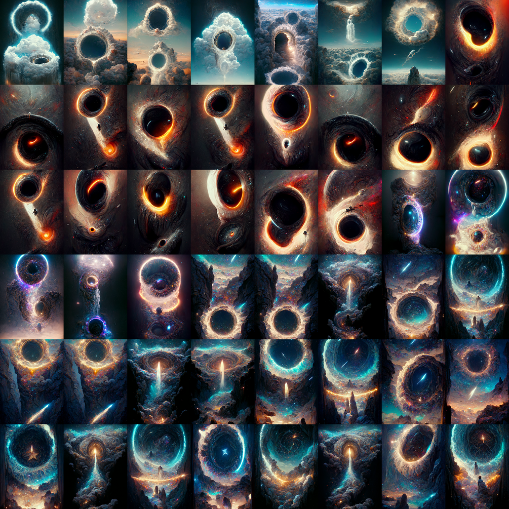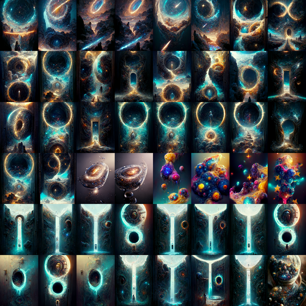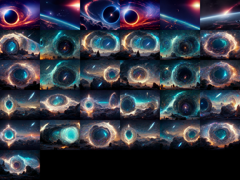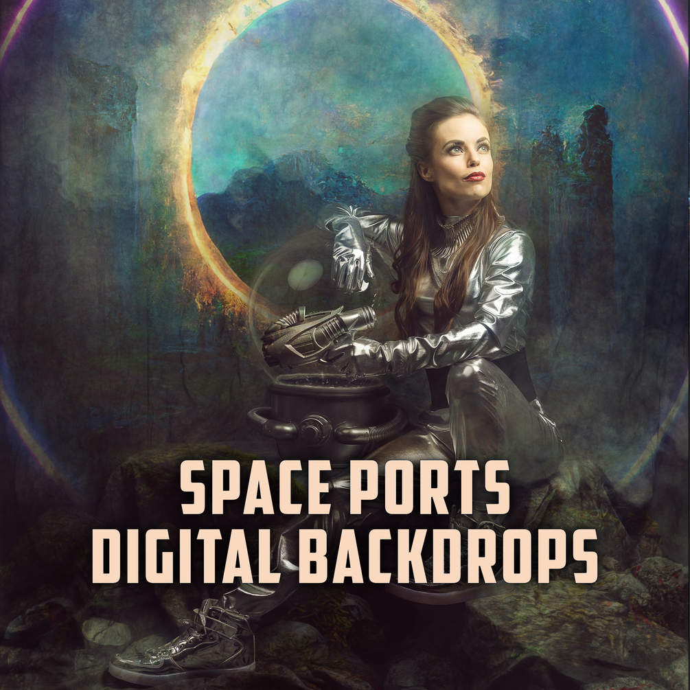 Space portals digital backdrops. It was generated with an AI generator, upscaled and post-processed for the best use in your compositing work or as art. Sci-Fi themed. Themes include portals, gates, unusual galaxies, and other space themes.