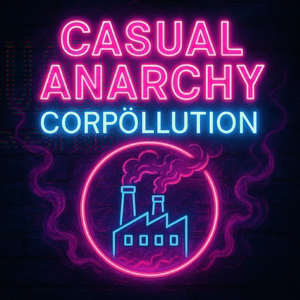 Corpöllution is an AI-generated music album by Casual Anarchy, a virtual band—not a real-world act. The songs and vocals were composed/produced with modern generative tools (music + voice synthesis), while the lyrics, art direction, structure, edits, and mixing were human-crafted. This record is an experiment in the democratization of production: proving that a single creator can write, steer, and publish a full album without label budgets, A&R committees, or “algorithm-friendly” compromises.